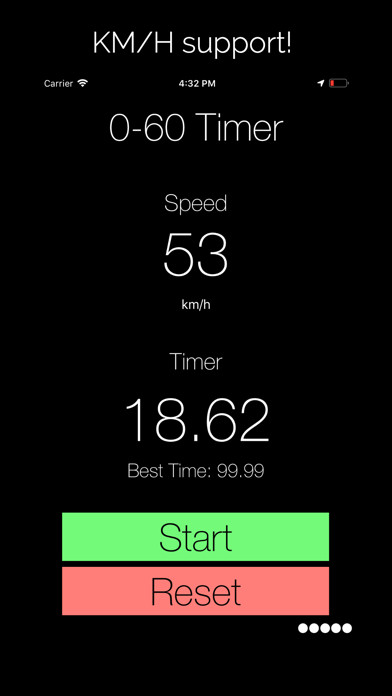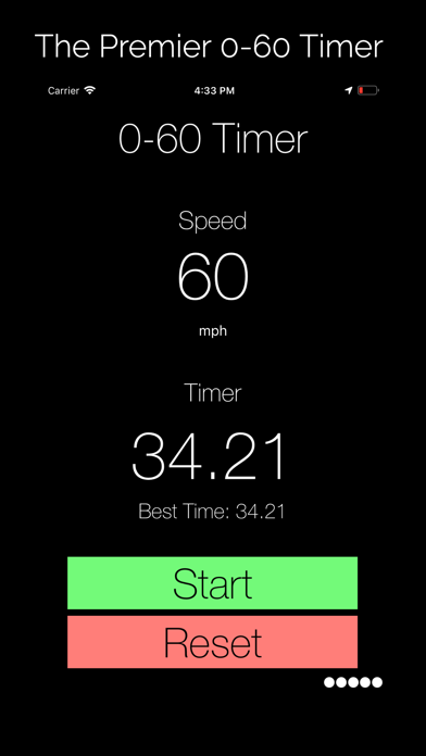 This app will measure your vehicle's 0 to 60 time! You can use this time to compare with your friends or even for testing out new performance modifications! Just press start and it will give you a 3-second countdown before the timer starts! It automatically stops at 60 mph. It can also be used as a GPS Speedometer. It shows you the level of accuracy it is recording at the bottom. See what your best time can be! **NOTE: Due to hardware limitations this app can measure your 0-60 time within a half-second tolerance. Make sure to do multiple tests and average out your results for an accurate time!