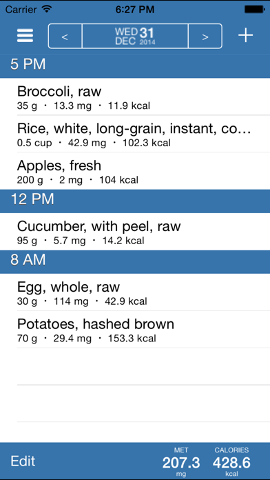 - includes pre-loaded & searchable hand-picked USDA-based food items