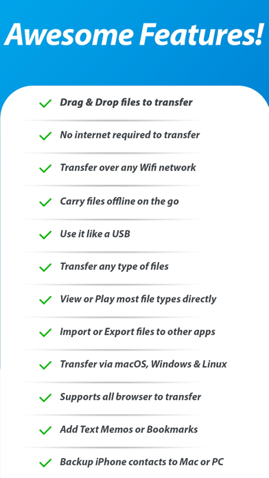 You can even use Air Share as a wireless USB drive to carry any file type without any problem!