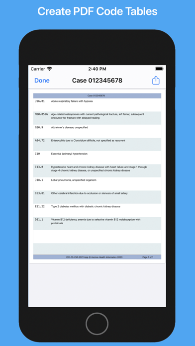• Reverse Code Lookup – Instantly find details on codes (e.g. E11.21).