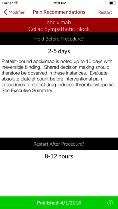 This version combines both the 2018 Regional Anesthesia guidelines from the publication “Regional Anesthesia in the Patient Receiving Antithrombotic or Thrombolytic Therapy; American Society of Regional Anesthesia and Pain Medicine Evidence-Based Guidelines (Fourth Edition)” and the 2018 Interventional Pain guidelines from the publication “Interventional Spine and Pain Procedures in Patients on Antiplatelet and Anticoagulant Medications (Second Edition); Guidelines From the American Society of Regional Anesthesia and Pain Medicine, the European Society of Regional Anaesthesia and Pain Therapy, the American Academy of Pain Medicine, the International Neuromodulation Society, the North American Neuromodulation Society, and the World Institute of Pain.”