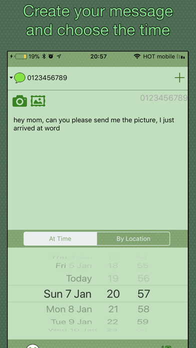 when it's time to send or you just arrived in the selected location, just Click&Send that mean you will get a push notification, when you tap on it, automatically your message will be ready to be send, just click send,