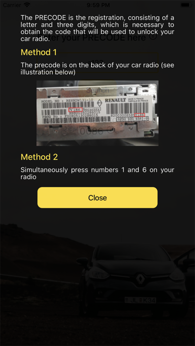 A simple and effective interface: simply enter the precode on the back of your car radio to get the activation code.