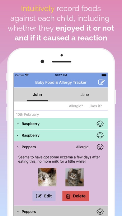 If your child has food allergies, the most effective way to deal with them is to avoid foods that trigger symptoms. This can be tricky, though - so why not track and record their preferences with the Baby Food & Allergy Tracker app.