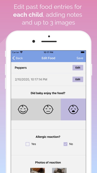 - Save up to three images for each food or reaction