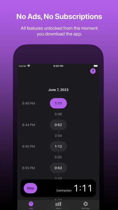 Baby Time Pro is a clean and modern app designed to make tracking your contractions effortless. Don't use complicated and outdated methods, and embrace a user-friendly experience that keeps your focus where it matters most—on your beautiful journey toward parenthood.