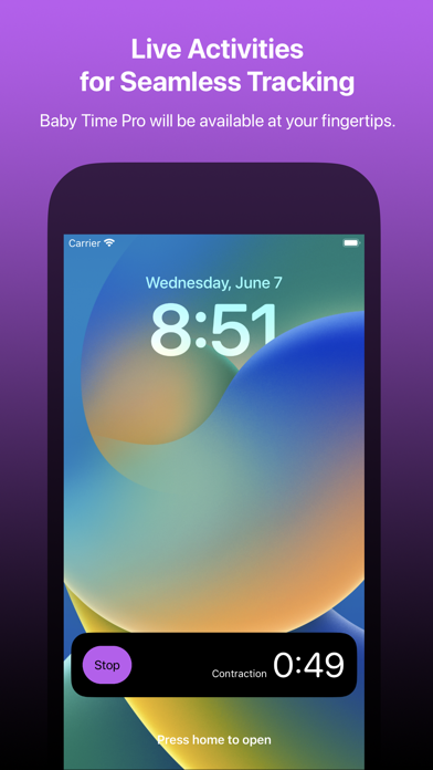 • Live Activities for Seamless Tracking: Baby Time Pro will be available at your fingertips. This innovative feature enables you to track your contractions while using other apps on your phone. Multitasking has never been easier.