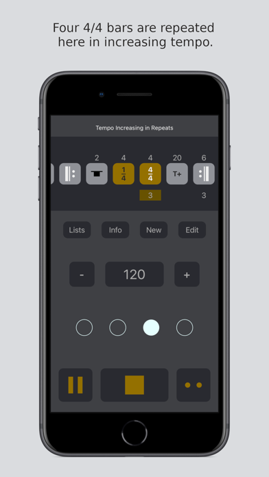 The metronome app contains many demo sequences that will help you to learn how the metronome can be used. You can copy and modify the demo sequences for your own purposes.