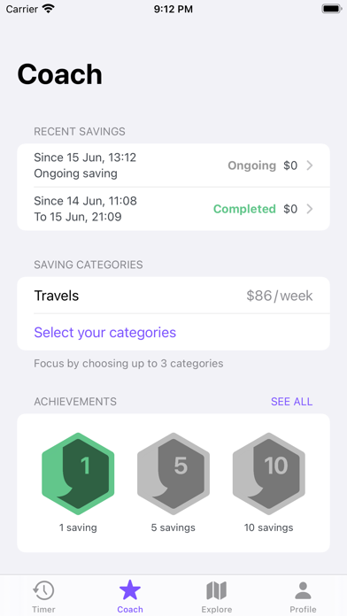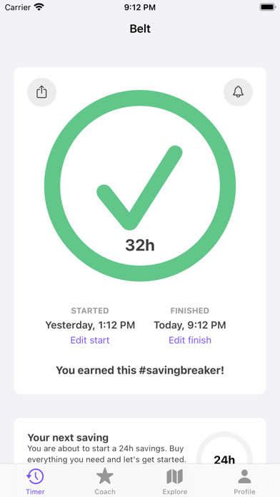 Belt allows you to determine savings periods in which the user cannot make any purchases and reduce their expenses. We call it "Financial fast".