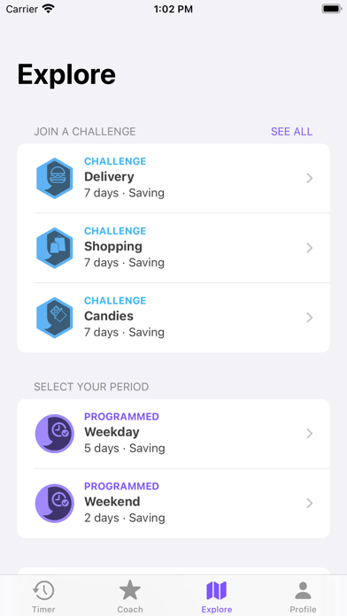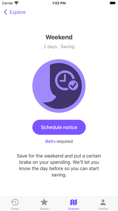 Belt allows you to determine savings periods in which the user cannot make any purchases and reduce their expenses.