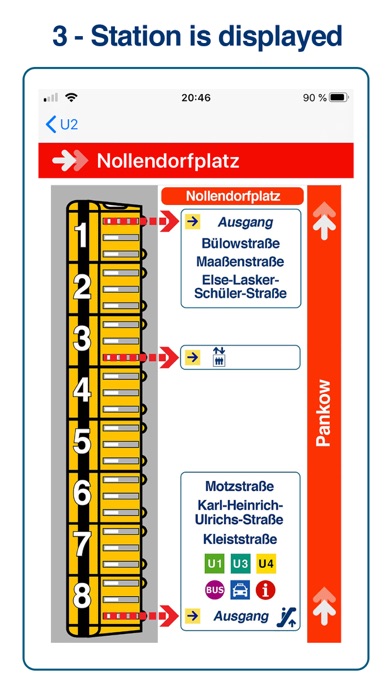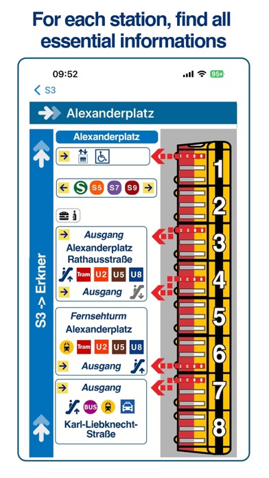 Position yourself intelligently: Berlin S+U Bahn Exit tells you in which carriage and in front of which door to position yourself to be in front of the right exit or connection. No need to search anymore, we will guide you directly.