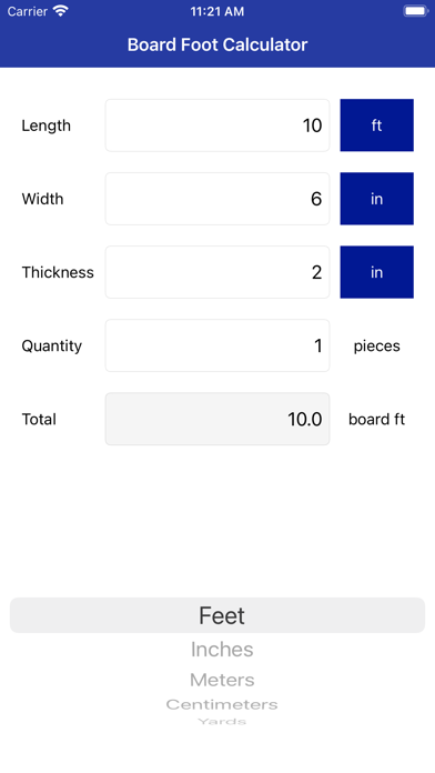 Board Foot Calculator Pro can also quickly determine board foot based on length, width and thickness expressed in: