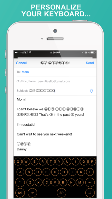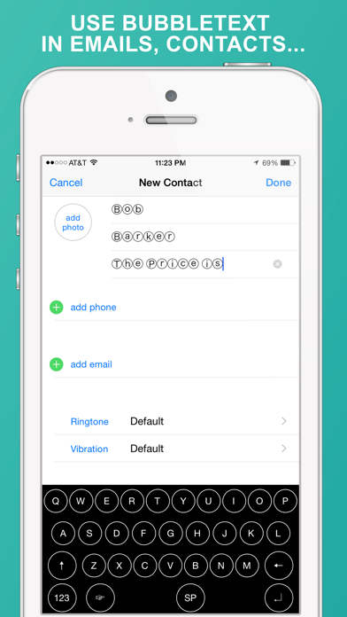 BubbleText Keyboard for iPhone, iPad, and iPod Touch is a new keyboard that enhances your old keyboard and allows you to type in text surrounded by bubbles. Show more emotion, creativity, and flair when typing on your mobile device. Be more spirited in your next text, email, or Facebook post using BubbleText Keyboard and show off the full potential of your device running the iOS 8 or iOS 9 software.
