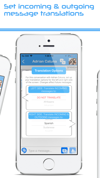 Chat with those that speak a different language, by seeing their incoming messages translated into your language.