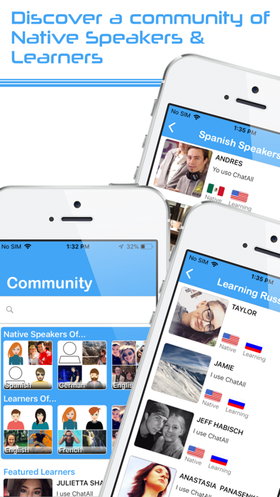 ChatAll should not replace your other language learning efforts (Duolingo, Rosetta Stone, etc...), but rather to compliment them. Immersion in the language you are learning is key.