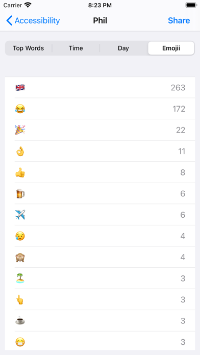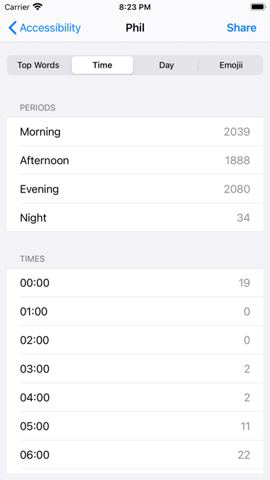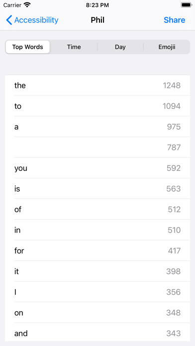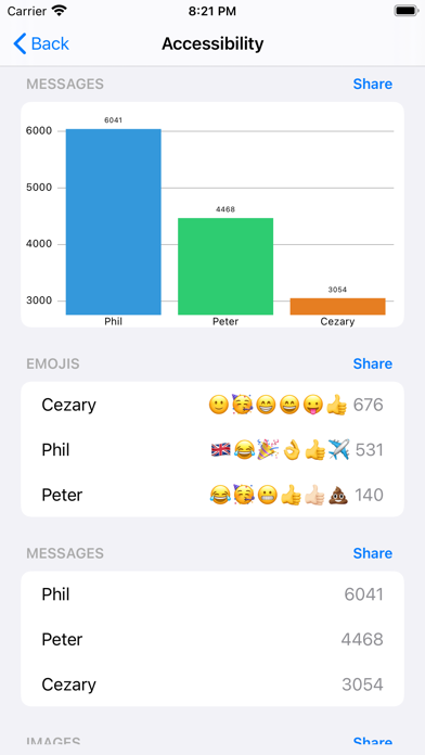 You can then preview the stats - all stats will be saved for later access in the ChatStats app