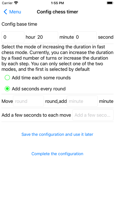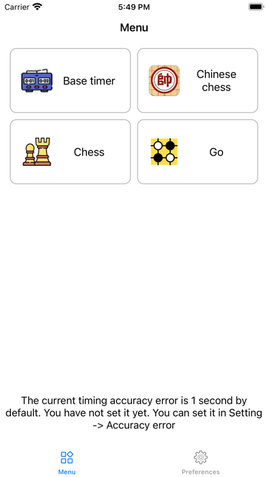 The chess clock, also known as the fast chess timer, is usually used to limit the player's time in official matches. Chess clocks are generally mechanical or electronic electronic tools, with a certain weight and inconvenience, and different chess types, timing rules are also different. This chess clock app includes the timing rules of the three most mainstream chess types of Chinese chess, chess and Go. Powerful, support device horizontal and vertical screen rotation. When you need to play fast chess with your friends, you don't need a chess clock, just pull out your mobile phone and quickly play a fast chess game.