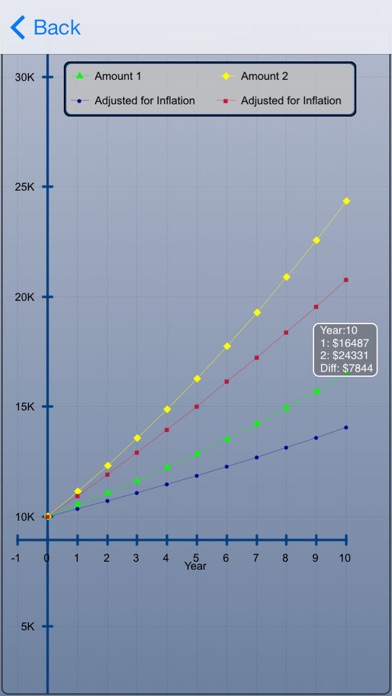 Calculate compounding interest with the ability to compare multiple scenarios and alter interest rates at future points in time.