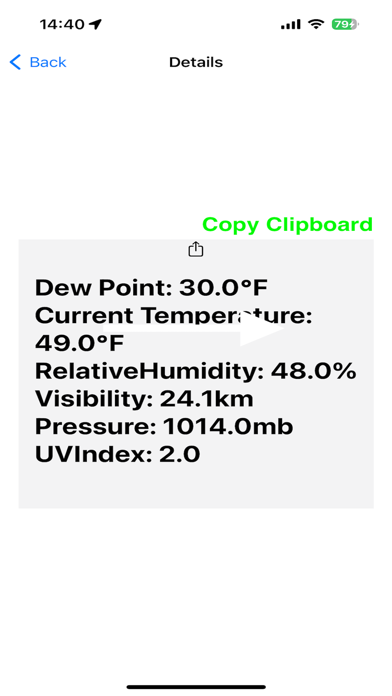 DewPoint Hygrometer establishes your location from GPS satellites, and then obtains the meteorological information that applies at the relevant co-ordinates.
