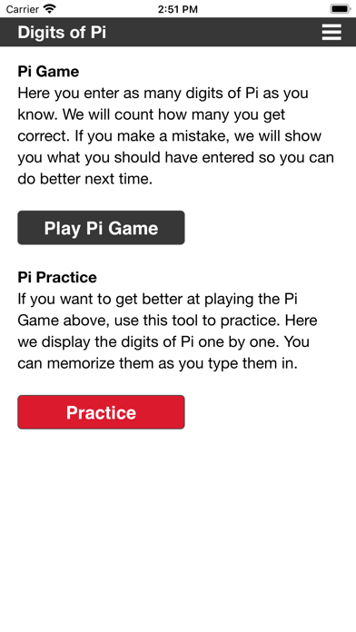 Therefore, we created the Digits of Pi App so you can exercise your brain! Use the app to practice memorizing Pi and to test yourself to find out how many digits of Pi you know.