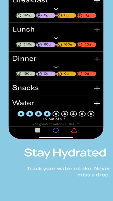 • Track Your Meals: Log your breakfast, lunch, dinner, and snacks with ease.