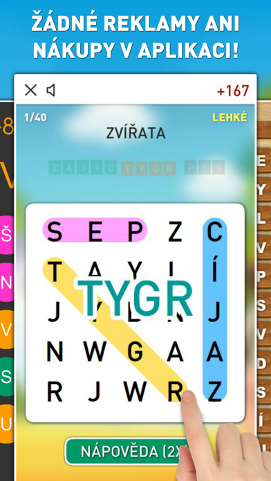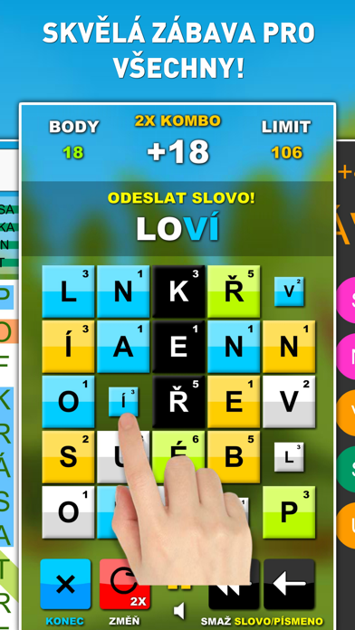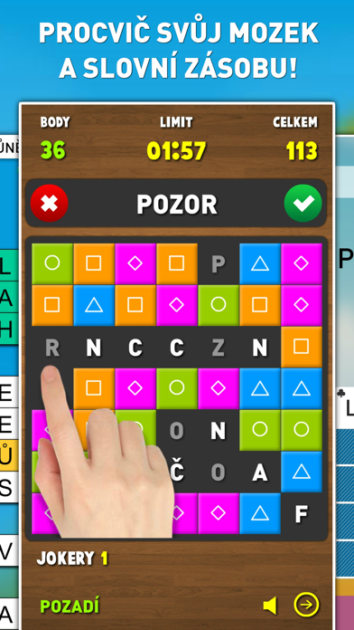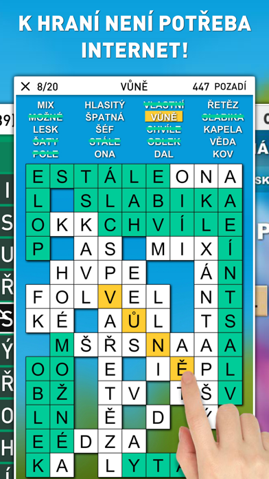 • Word Puzzle: 3 game modes. Tap to remove groups of 3 or more symbols of the same color and form Czech words (min. 3 letters) from the revealed letters. You get new symbols for each word.