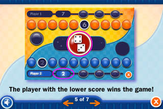 Players take turns rolling two dice, finding their sum, and then matching the sum to one or more numbers in their hand. Every match eliminates that number or numbers from a player’s hand and reduces their score. Players try to eliminate all the numbers in their hand. Play continues until no more sums from the dice can be matched to a number or numbers in a player’s hand. The player with the lowest score wins the game! Visual and audio reinforcement of correct and incorrect answers help players master addition facts and comparison skills.