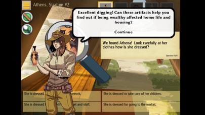 Players can explore the sites in any order; progress is recorded in journals that log collected artifacts, field notes and achievements. Throughout the game, players use C3 skills to analyze and make connections. They carefully deduce the facts about each area, stratum by stratum and artifact by artifact. At each location, players make meaning of how artifacts were used through a series of analysis questions and reports that require players to make connections, read closely and consider the historical context of the primary source artifacts. Finally, players see each site come alive as artifacts populate an historically accurate image of Greek life.