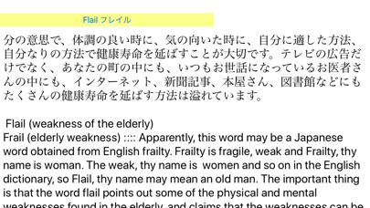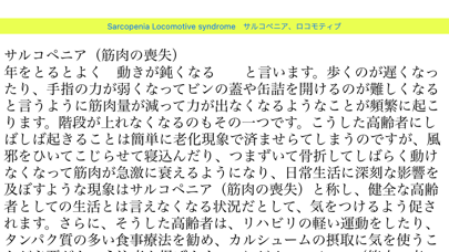 With the emergence of the world's aging society, health care has sought the unique physical weaknesses of the elderly, not only for longevity but also for healthy and valuable longevity. The three concepts that extend healthy life expectancy are: 1. Sarcopenia (loss of muscle) 2. Movement syndrome (syndrome of musculoskeletal function) 3. Frailness (elderly weakness). This is a three-page description centered on newspaper articles, explaining the basic story by a doctors who asked the elderly to actually do. As an attachment, this app include the map which turns to north by pressing the north button.And in case you look for an article on health It might be useful to have an Internet with a back button that allows you to return to articles you have already viewed.