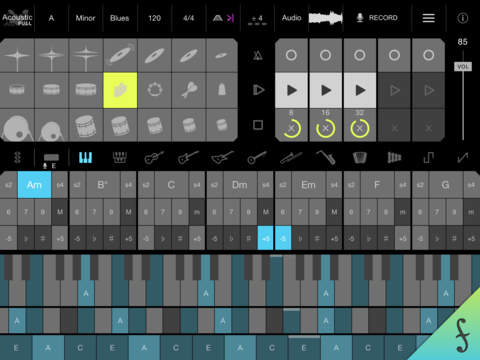 Choose from 12 instruments, all optimized for high quality playback on the iPad. Select from four drum modes with both analog and electronic samples. Add filter and reverb effects to shape your sound. Realtime visual pitch detection lights up corresponding notes as you sing.