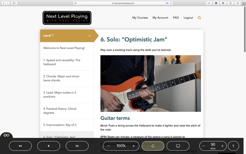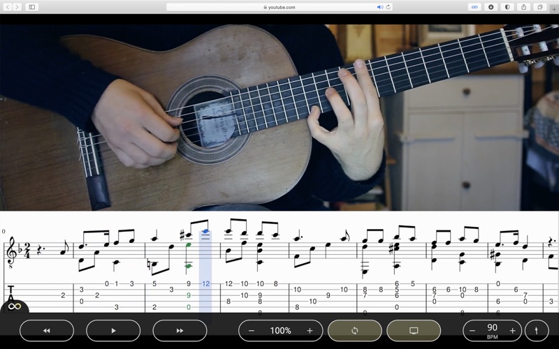 Set a loop and let the app repeat certain parts of the video. Adjust the tempo of the video in 5% steps. Play/Pause and forward or rewind.