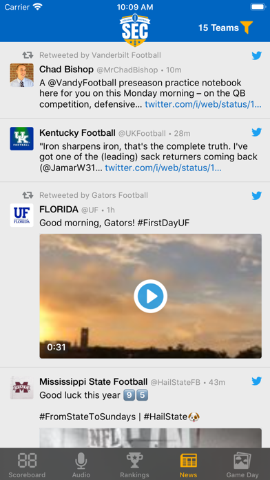Stay connected to your favorite college football teams with the most comprehensive football app for SEC, ACC, Big 10, and Big 12 conferences. GameDay Live delivers everything you need to follow the action from kickoff to the final whistle.