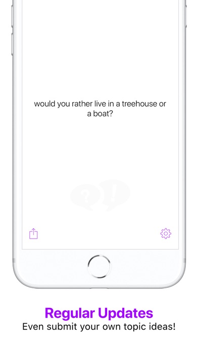 Tap the settings button to select a pack of topics. You can even submit your very own topic!