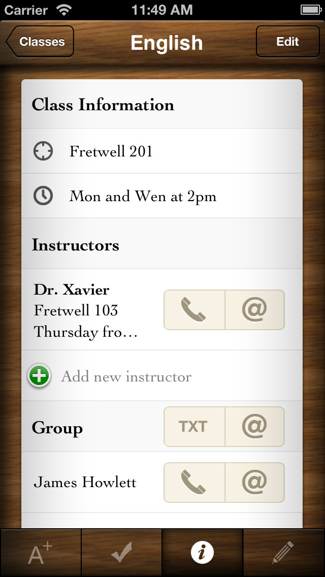 Send group texts and emails right from the app. Yes, and if you really, really wanted to, you can call your professor too.