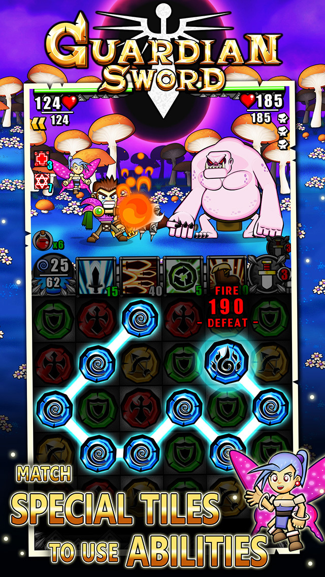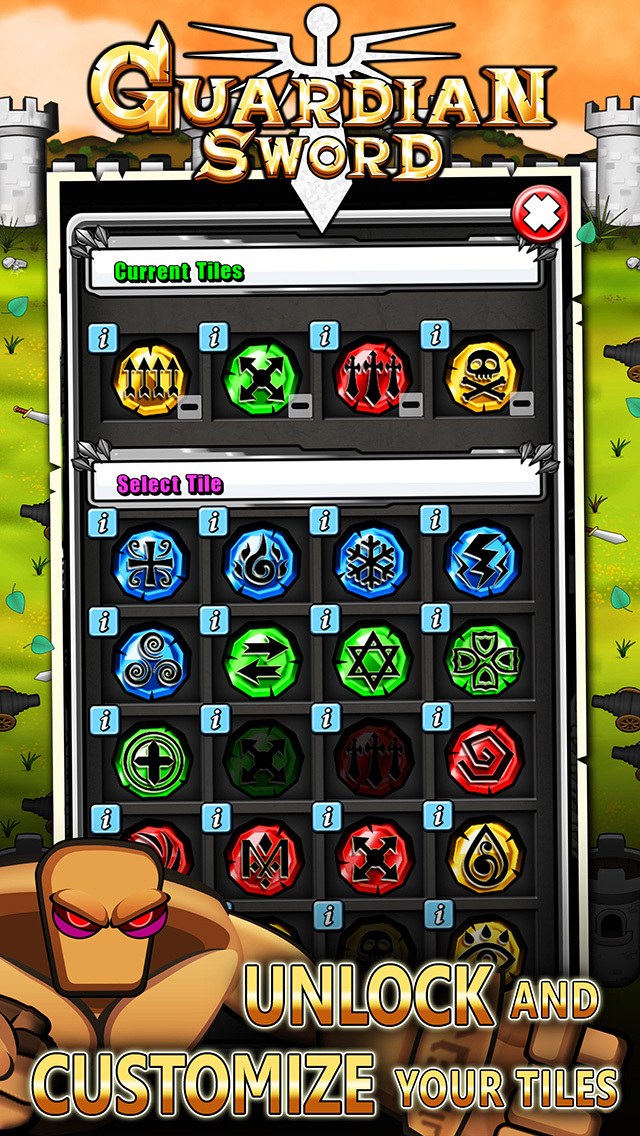 Guardian Sword Highlight is the unique gameplay that allows the players to customize the puzzles by themselves. You can choose from 40 Tiles with different abilities which means you can devise your own strategy in various ways and limitless.
