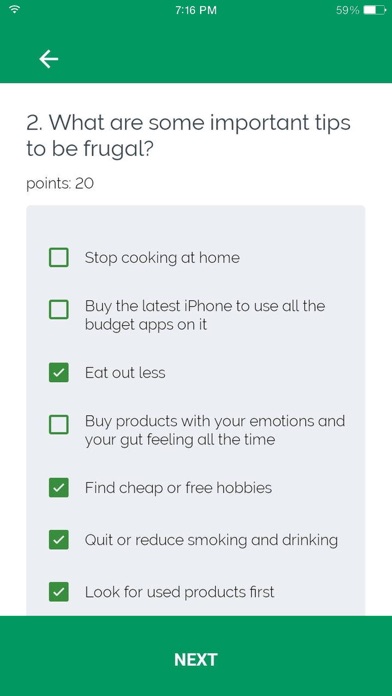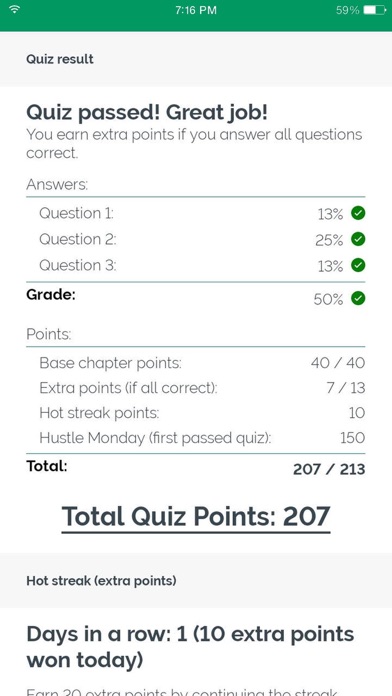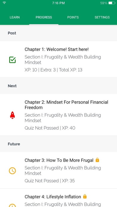 You earn points by passing a quiz after every chapter! This is the next level of learning budgeting, saving, and investing!