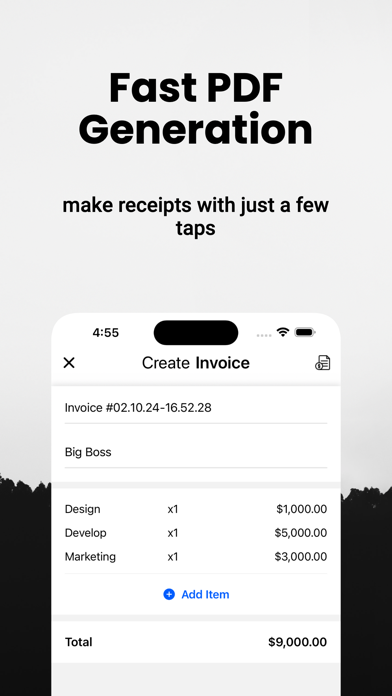 • Convenient PDF Generation: Gone are the days of printing and mailing invoices. With Invoice Maker, you can generate PDF receipts directly from your device and send them to your clients with just a few taps. It's quick, convenient, and environmentally friendly.