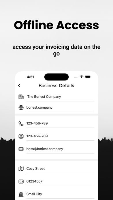 • Offline Access: Need to access your invoicing data on the go? No problem. With Invoice Maker, you can access your data even when you're offline, ensuring you never miss an opportunity to send an invoice.