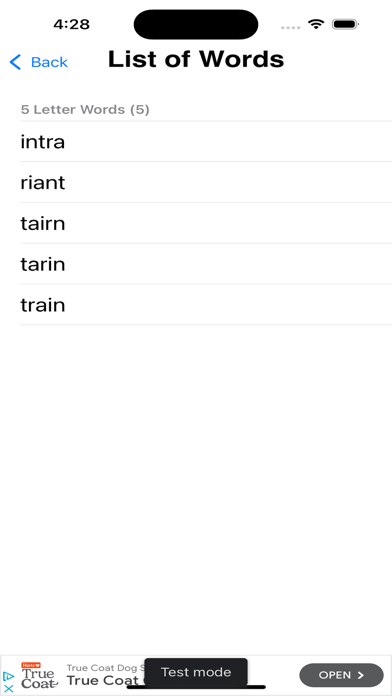 You might want to upgrade to my Jumbled Word Solver Advanced app which gives you words of all lengths that can be created with the set of letters.