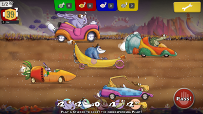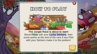 In this game, five animals on their high-powered engines compete in a turn-based challenge. Your goal is to manage your hand of Lucky Stickers, randomly picked from a pool, to boost their speed: each Sticker will make the corresponding Pilot overtake the one just ahead of them.