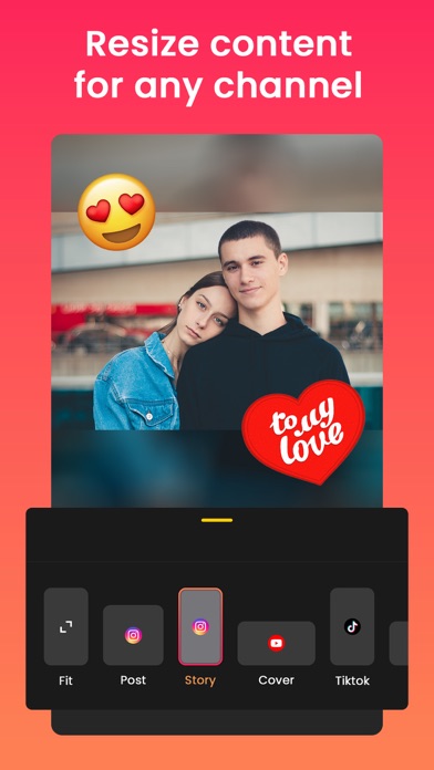 - Export and share: Save your photos and videos in maximum high resolution up to 4K, and easily share full size video and picture without cropping on Instagram, Facebook, Messenger, SMS, mail and more.