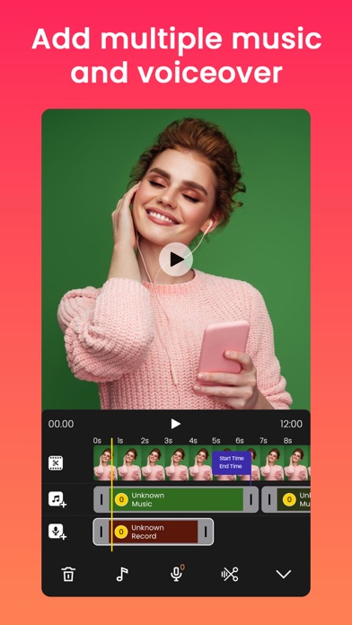 Bring your content to life with audio, FX, frame, emoji, sticker, overlay, text, draw, trim, move, rotate, scale, flip and more. You can even add music from our library, iTunes, or record voice-overs with ease. Plus, our app boasts 4k resolution and no watermark for a truly professional feel.