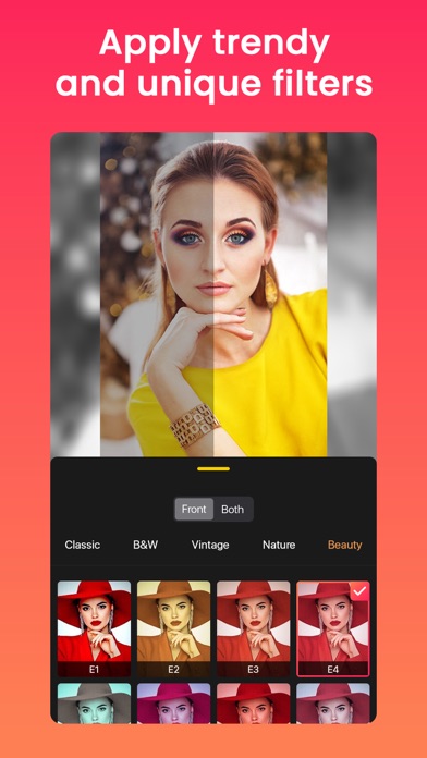 - Filters: Choose from over 95+ unique filters, including Classic, Black & White, Cinematic, more.