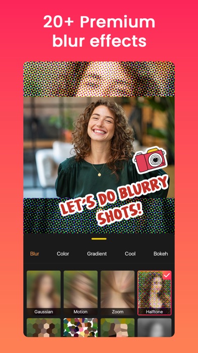 - Backgrounds: Choose from over 130+ backgrounds, including Gaussian, Motion, Pointillise, Zoom, Hexagonal,Crystallise and Black and White Blur, Pattern, Color and Gradient Colour and more Backgrounds.