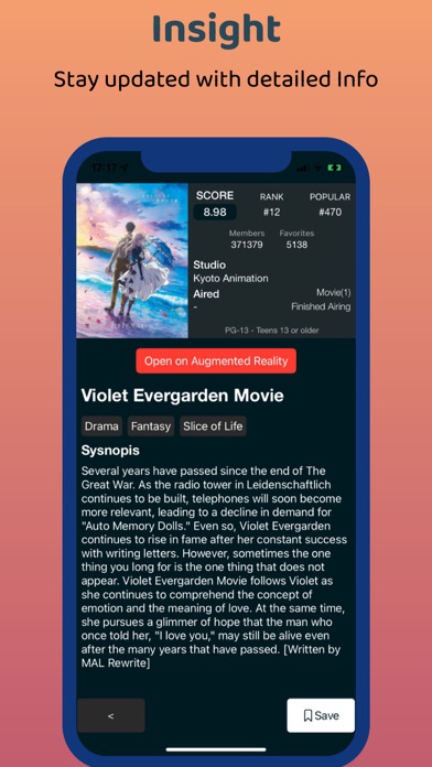 Find & Enjoy your favorite anime with Augmented reality and get notified of new episodes.