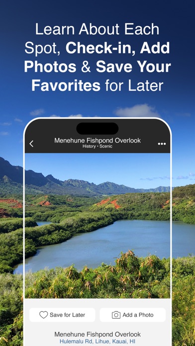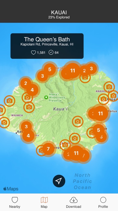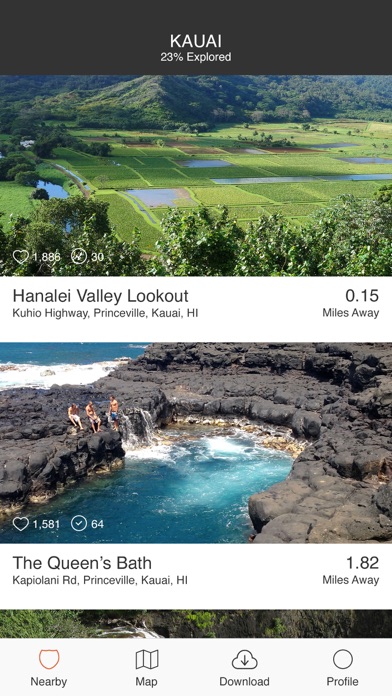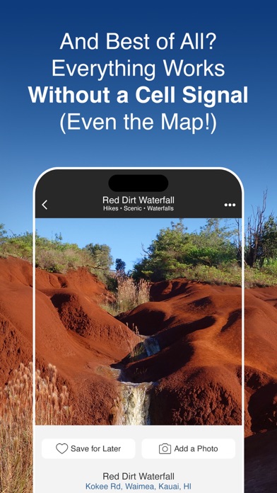 Simply download our offline guide to your phone and, like magic, the app will work when you don't have a cell signal. You'll be able to check in and save attractions, add new photos, and find the exact locations of all the coolest Kauai spots including the Queen's Bath, Glass Beach, Maniniholo Dry Cave, and Wailua Falls - all without having a working internet connection!
