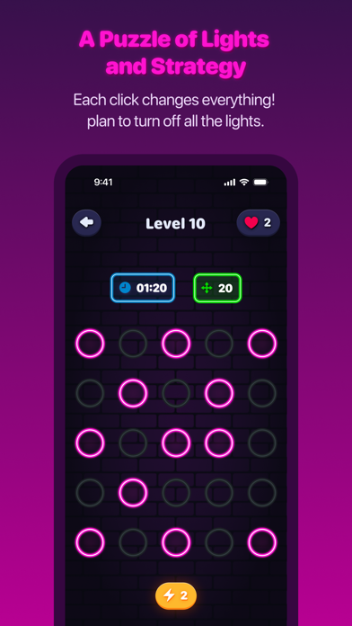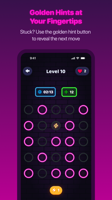 Lights Out offers optional in-app purchases to enhance your gaming experience. These in-app purchases can provide additional lives and hints. They allow you to continue playing without interruption and offer helpful guidance when you're stuck. Please note that these purchases are optional and not required to enjoy the core gameplay.