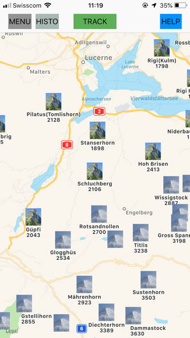 5) Possibility to show the swiss Mountains. To reduce the number of mountains, a filter on the altitude may be applied.
