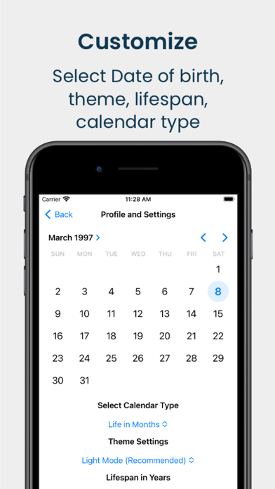 The calendar app is designed as an tool to help you harness the concept by visualizing your life week by week.