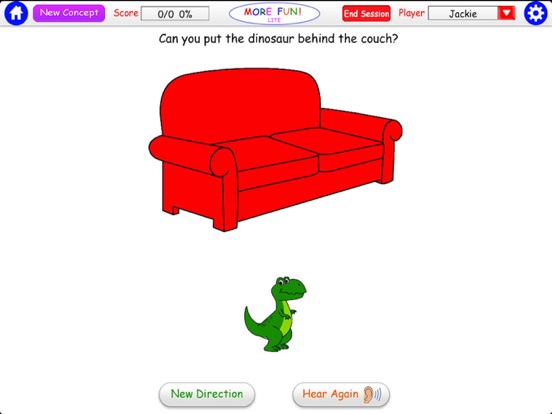 More Fun with Directions is designed to provide a fun and engaging way to practice listening, following directions, colors, comparatives (larger/smaller) spatial concepts, auditory memory and auditory processing. From the simplest of directions (“Put the house in the puzzle.”) to the more complex (“Put something with windows, doors and a roof in the puzzle”) your child can grow and learn with this game over time. Colorful, vivid art and animations against a white background combine to create a complete game experience without visual clutter. Sound effects and surprises keep the game engaging! This app is a great choice for a toddler/preschooler, or any young child who would like to practice listening to or reading directions!